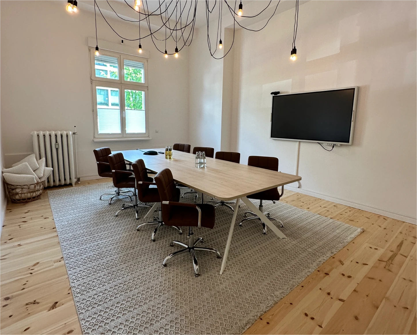 Buchen Sie unseren Konferenzraum "California" im Herzen von Berlin-Charlottenburg, direkt bei der Deutschen Oper. Der Konferenzraum bietet Platz für bis zu acht Personen und ist mit modernster Video- und Präsentationstechnik ausgestattet. Er eignet sich somit auch perfekt für hybride Meetings.